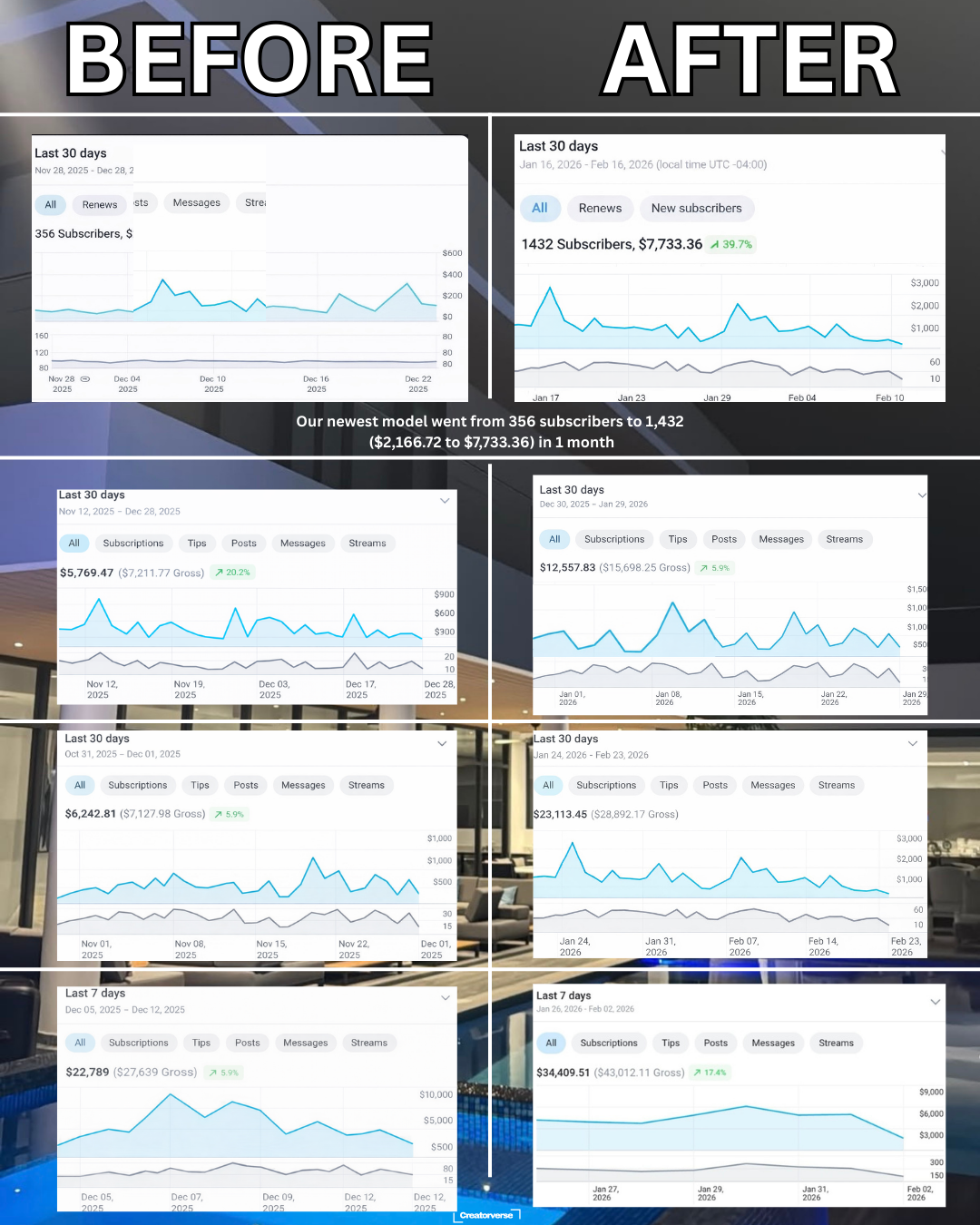 Most models begin seeing noticeable growth within the first 30–90 days once our systems and funnels are fully implemented. Remember we want long term results! Allowing you to maintain this as a career securing brand deals, partnerships and other incomes.